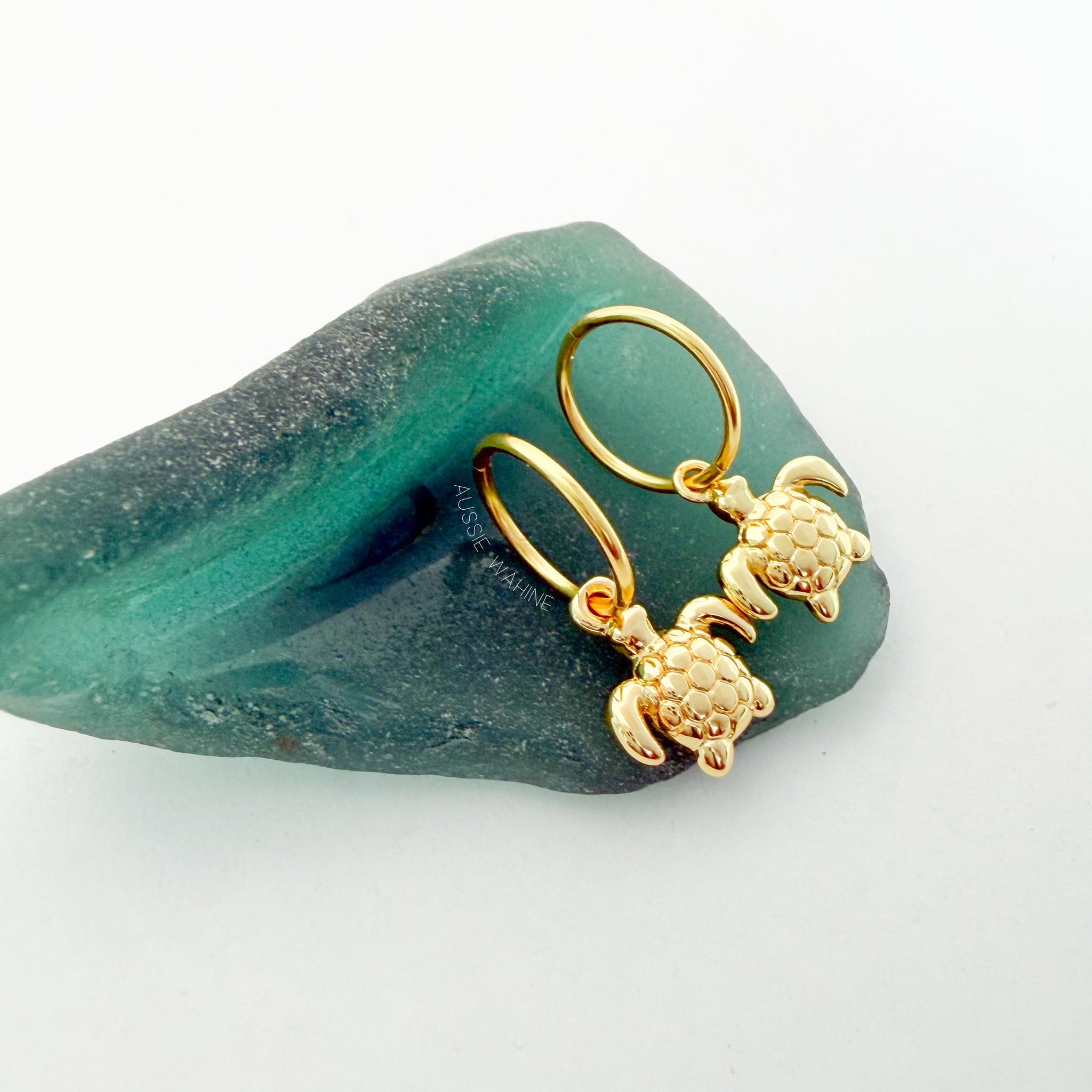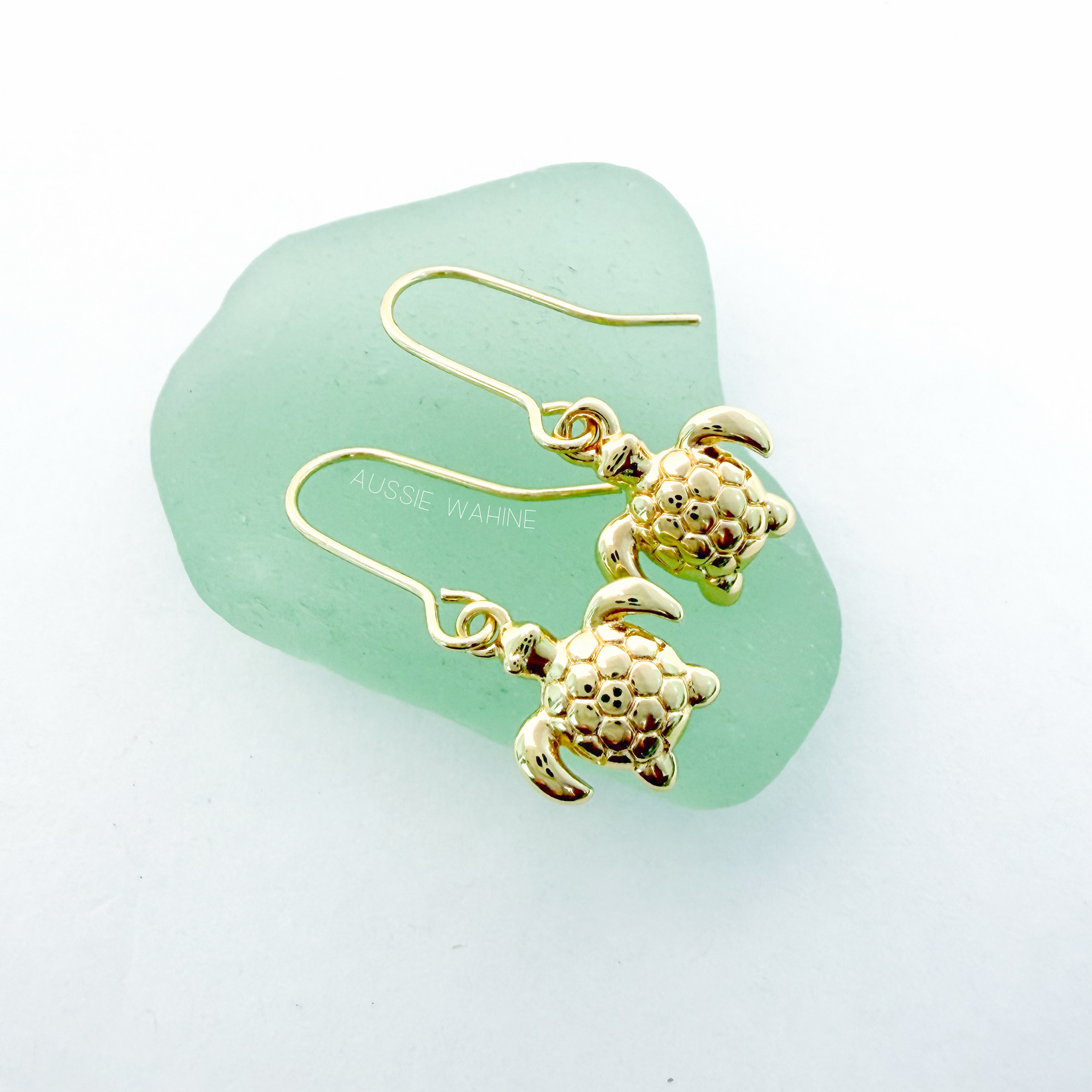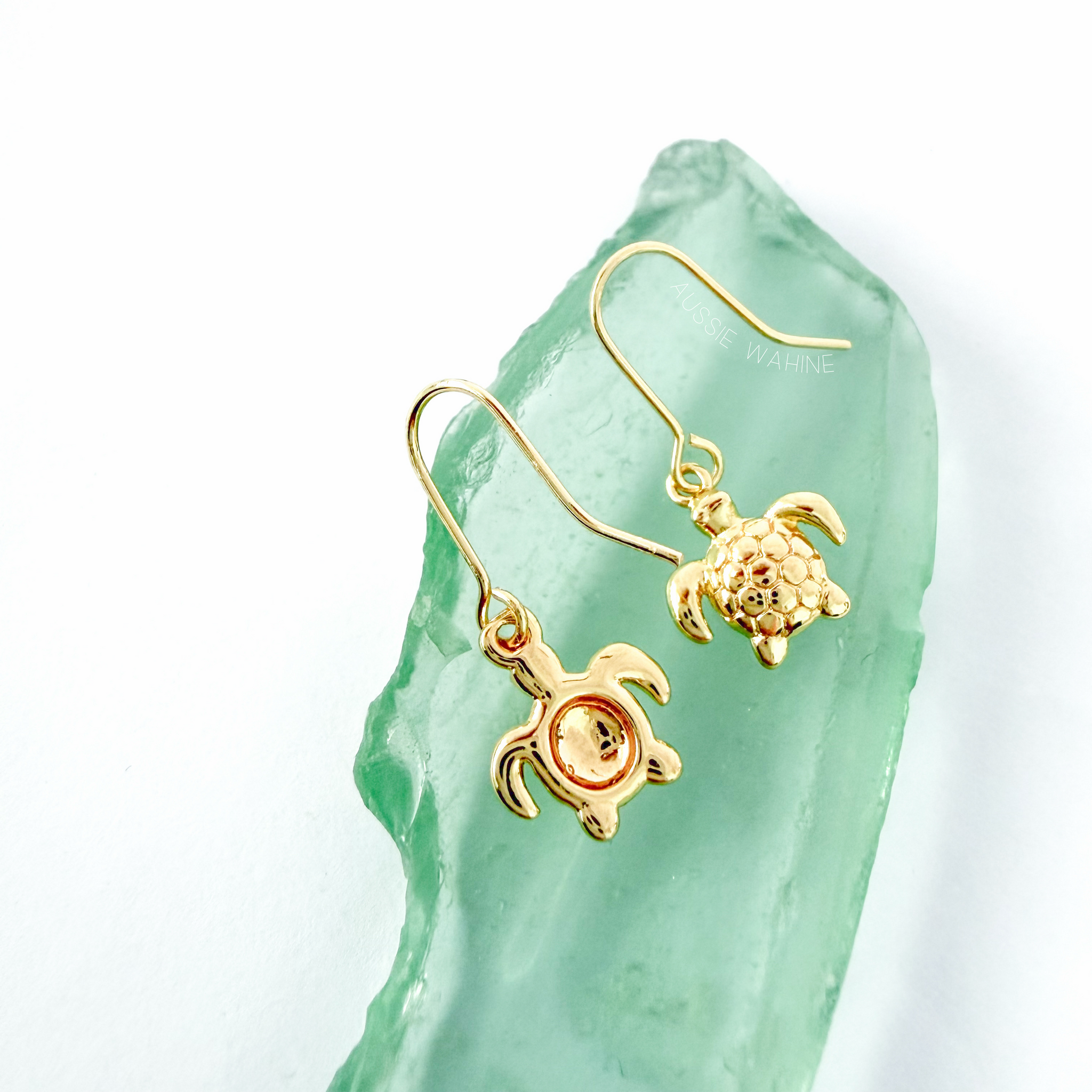 Make a statement with these enchanting Honu earrings, where Hawaiian tradition meets modern minimalism. Featuring solid 10mm turtles in 18kt gold plating, they're built to last through everyday adventures—pool days, ocean swims, and everything in between.